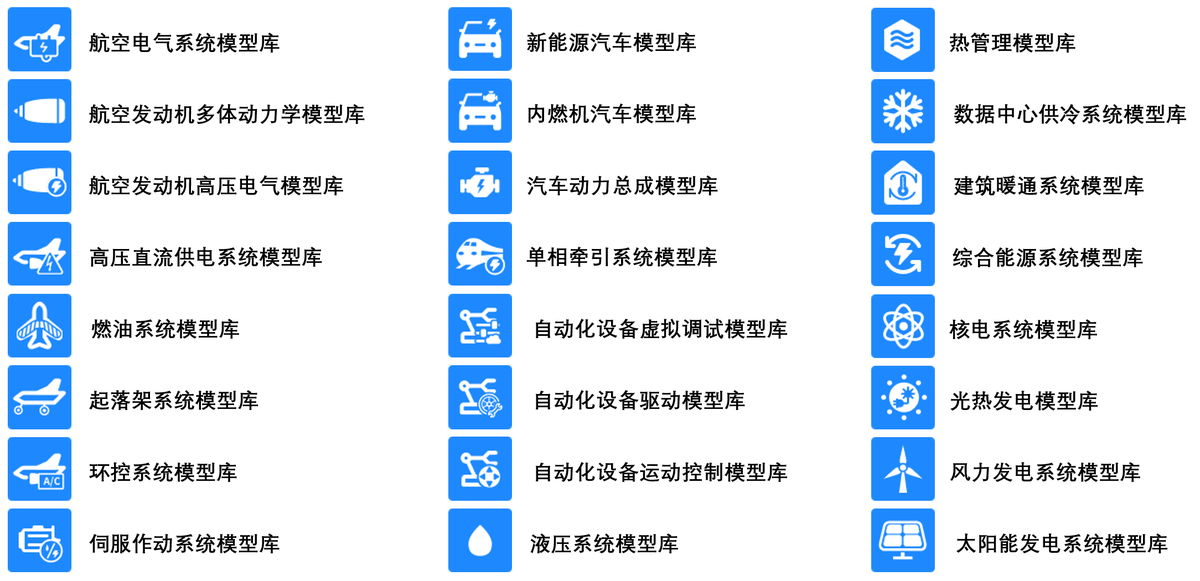 模型库可以支持航空高压直流电力系统建模与仿真。模型库提供了一个对航空电气系统高效建模、仿真和分析的框架,涵盖电气系统关键组件,支持整机能量评估及电源系统故障分析。